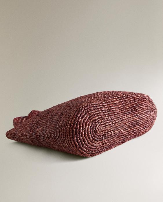 ZARA HOME СУМКА-ТОУТ ИЗ РАФИИ, БУРГУНДИ