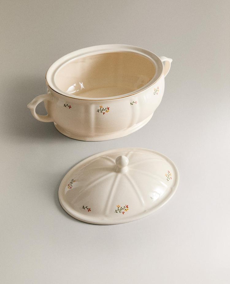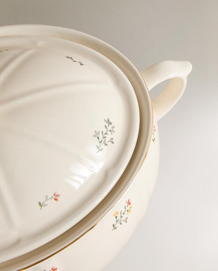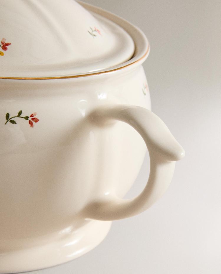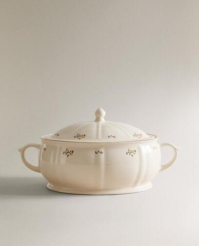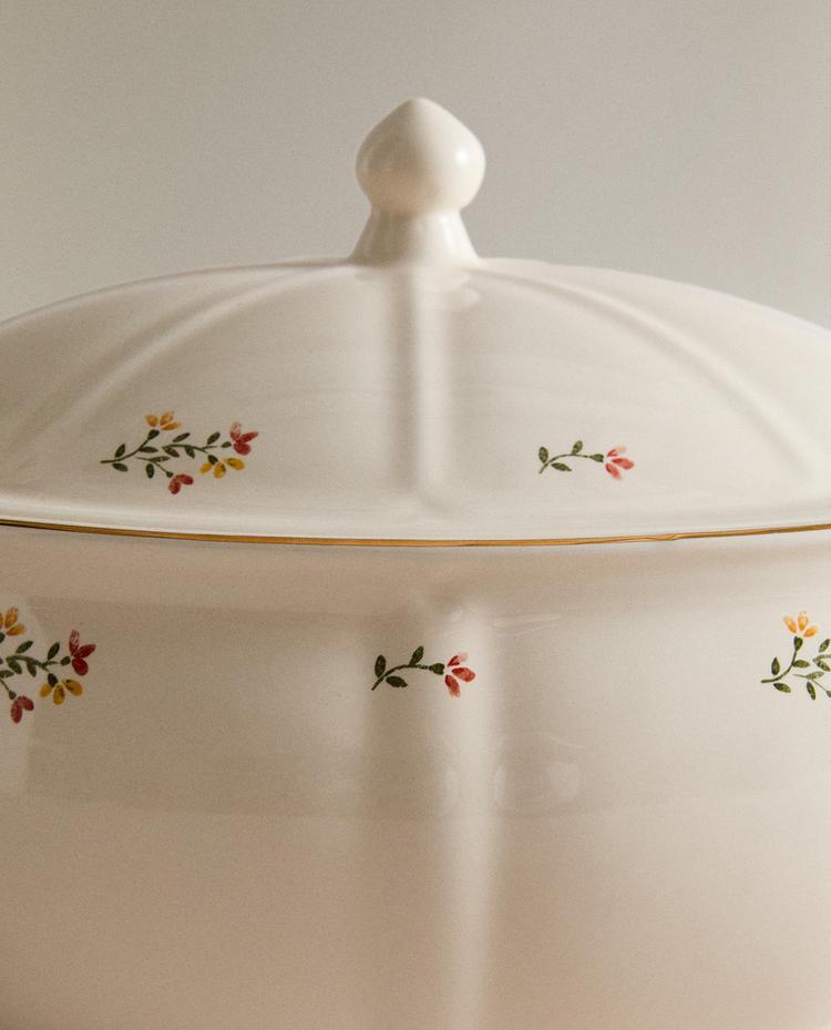 ZARA HOME СУПНИЦА ИЗ ФАРФОРА С ЦВЕТОЧНЫМ РИСУНКОМ, КРЕМОВЫЙ