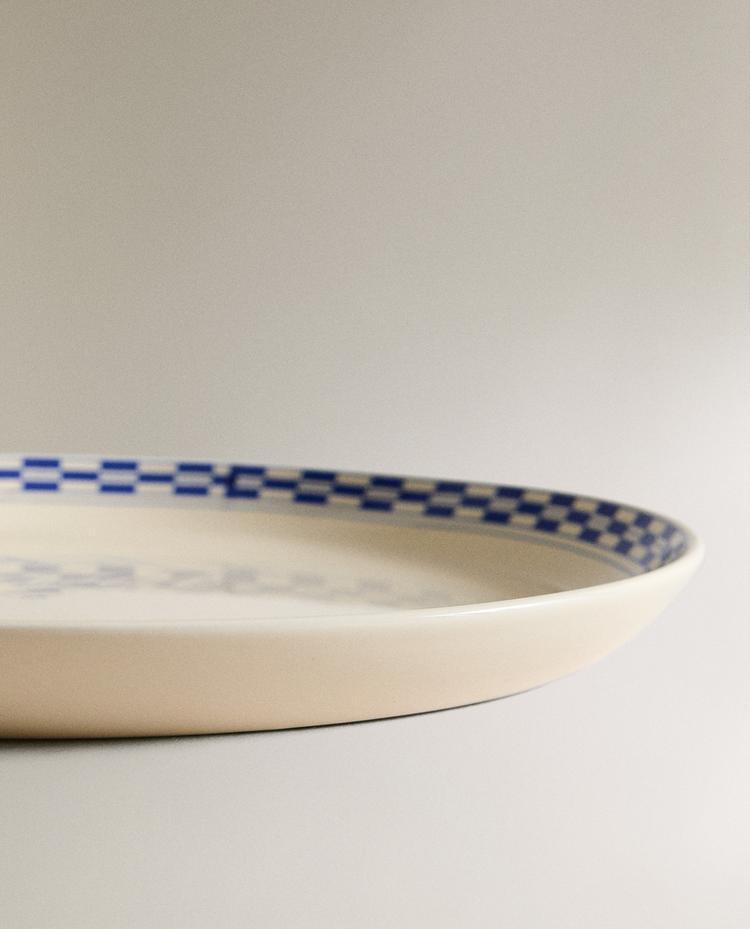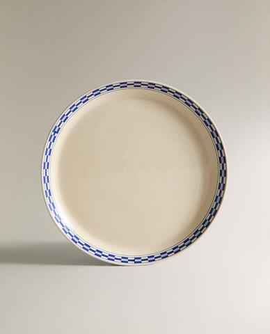 ZARA HOME ТАРЕЛКА ИЗ КЕРАМИКИ С УЗОРОМ В КЛЕТКУ, ЭКРЮ