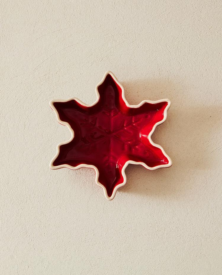 ZARA HOME ТАРЕЛКА В ФОРМЕ СНЕЖИНКИ ИЗ КЕРАМИКИ, КРАСНЫЙ