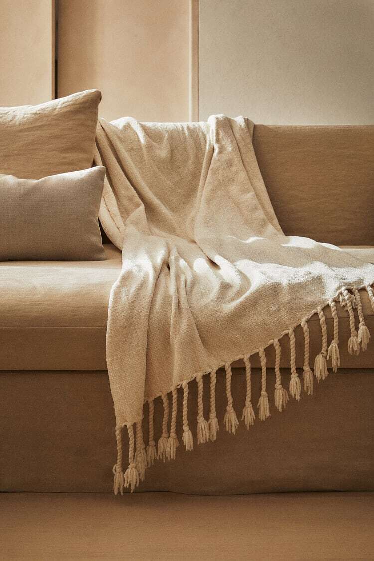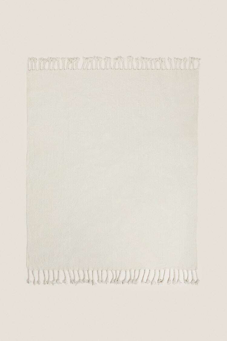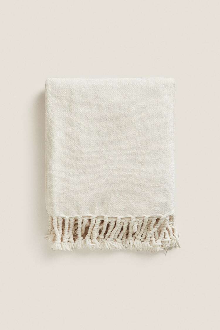 ZARA HOME ТОЛСТОЕ ОДЕЯЛО ИЗ СИНЕЛИ, ЭКРЮ