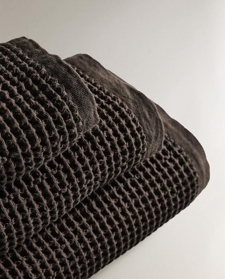 ZARA HOME ВАФЕЛЬНОЕ БАННОЕ ПОЛОТЕНЦЕ, КОРИЧНЕВЫЙ