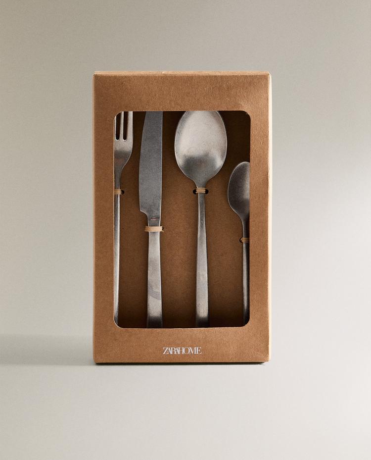 ZARA HOME ВИНТАЖНЫЙ НАБОР СТОЛОВЫХ ПРИБОРОВ( 4 ШТ.), СТАЛЬНОЙ СЕРЫЙ