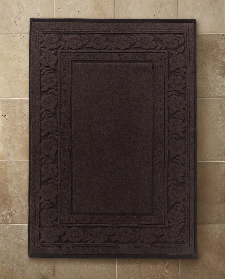Коврик для ванной из хлопкового велюра с жаккардовым цветочным узором и противоскользящей обработкой основания.