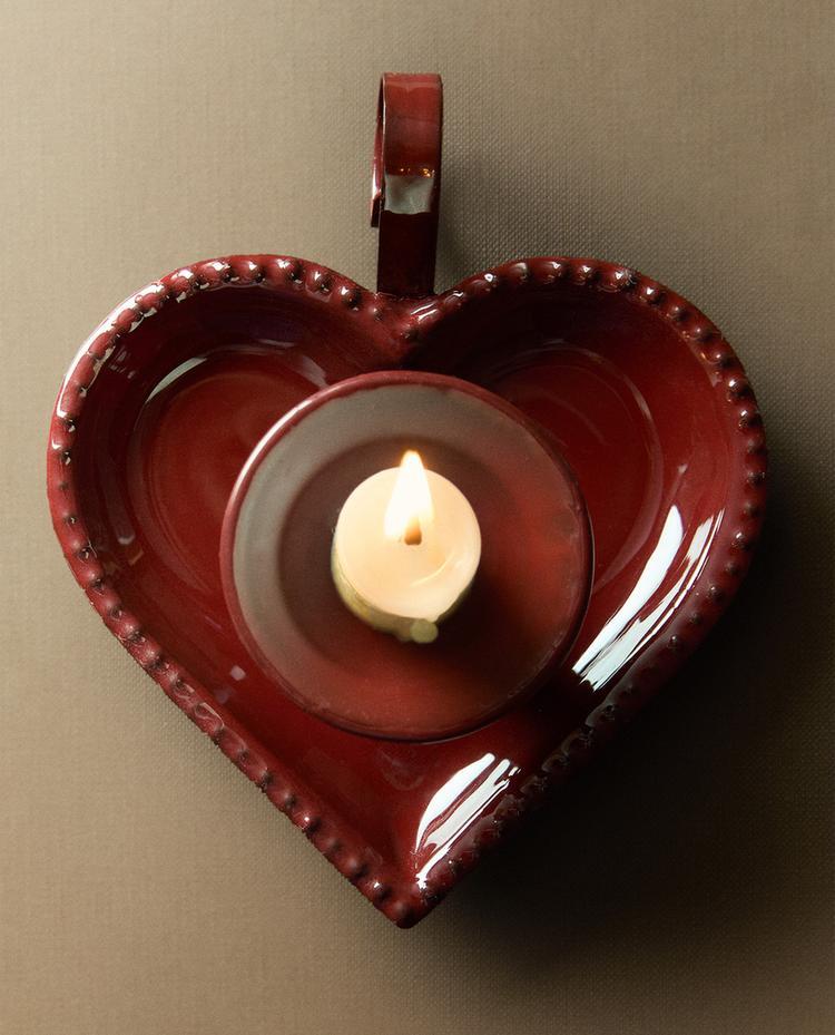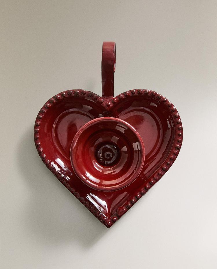 ZARA HOME ЖЕЛЕЗНЫЙ РОЖДЕСТВЕНСКИЙ ПОДСВЕЧНИК В ФОРМЕ СЕРДЦА, КРАСНЫЙ