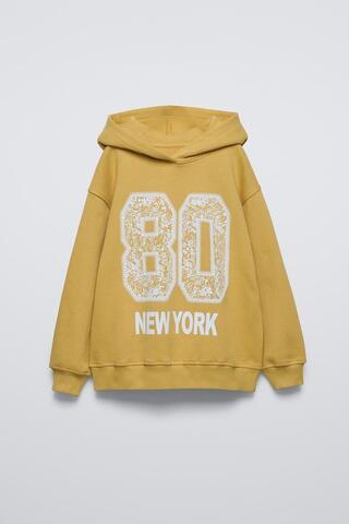 ZARA ХУДИ C ПРИНТОМ «НОМЕР», ГОРЧИЧНЫЙ