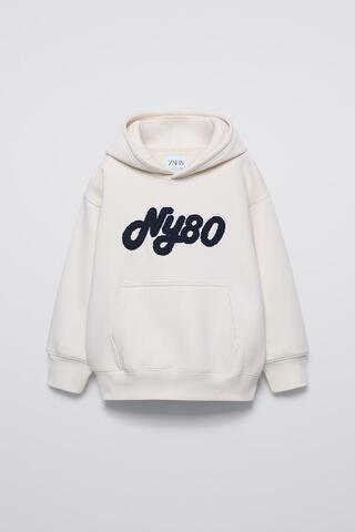 ZARA ХУДИ ИЗ МАХРОВОЙ ТКАНИ С НАДПИСЬЮ, ЭКРЮ