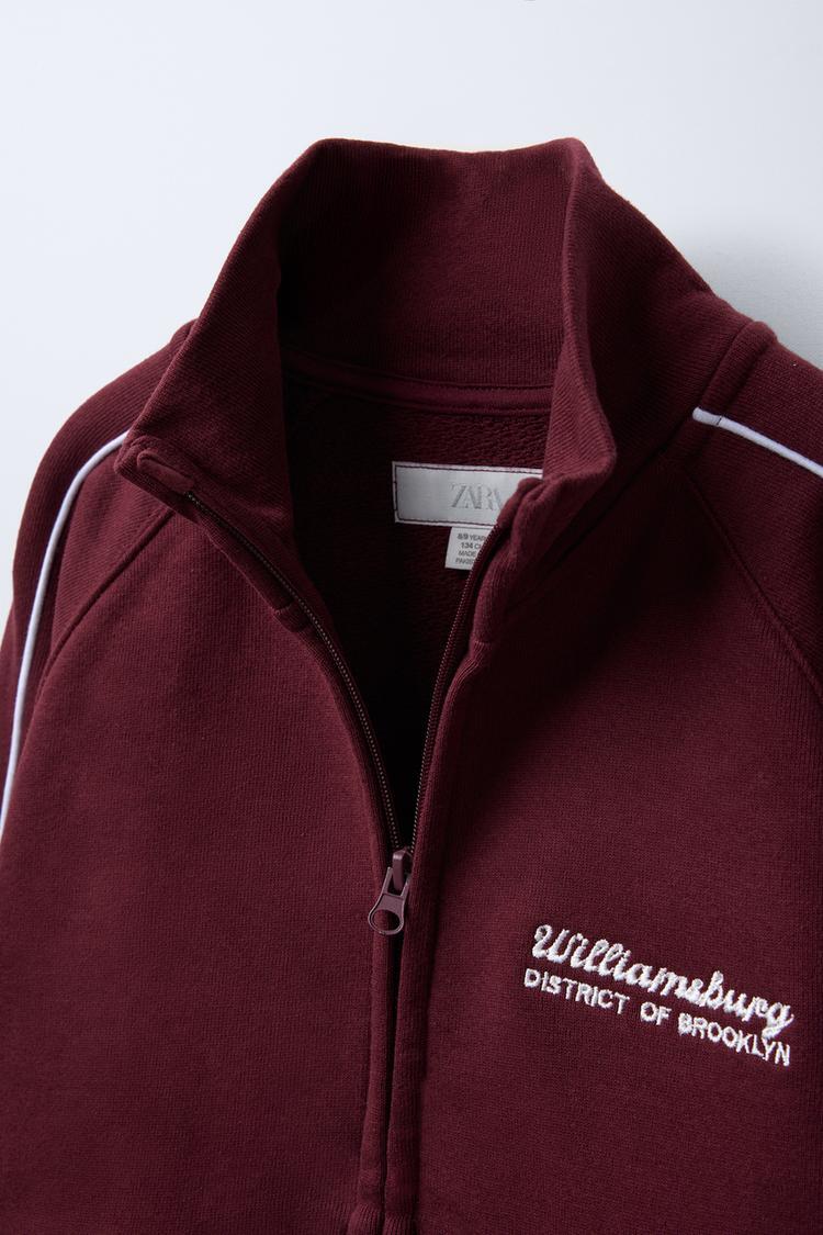 ZARA ХУДИ ИЗ МЯГКОЙ ТКАНИ С НАДПИСЬЮ, ГРАНАТОВЫЙ