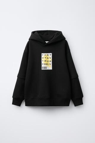 ZARA ХУДИ С ДВОЙНЫМИ РУКАВАМИ И НАДПИСЬЮ, ЧЕРНЫЙ
