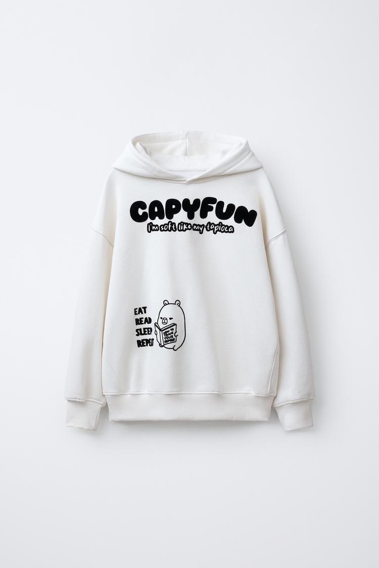 ZARA ХУДИ С КАПЮШОНОМ CAPIBARA CAPYFUN ©, ЭКРЮ