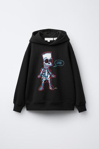 ZARA ХУДИ С КАПЮШОНОМ И ПРИНТОМ СКЕЛЕТА BART THE SIMPSONS ™ MATT GROENING, ЧЕРНЫЙ