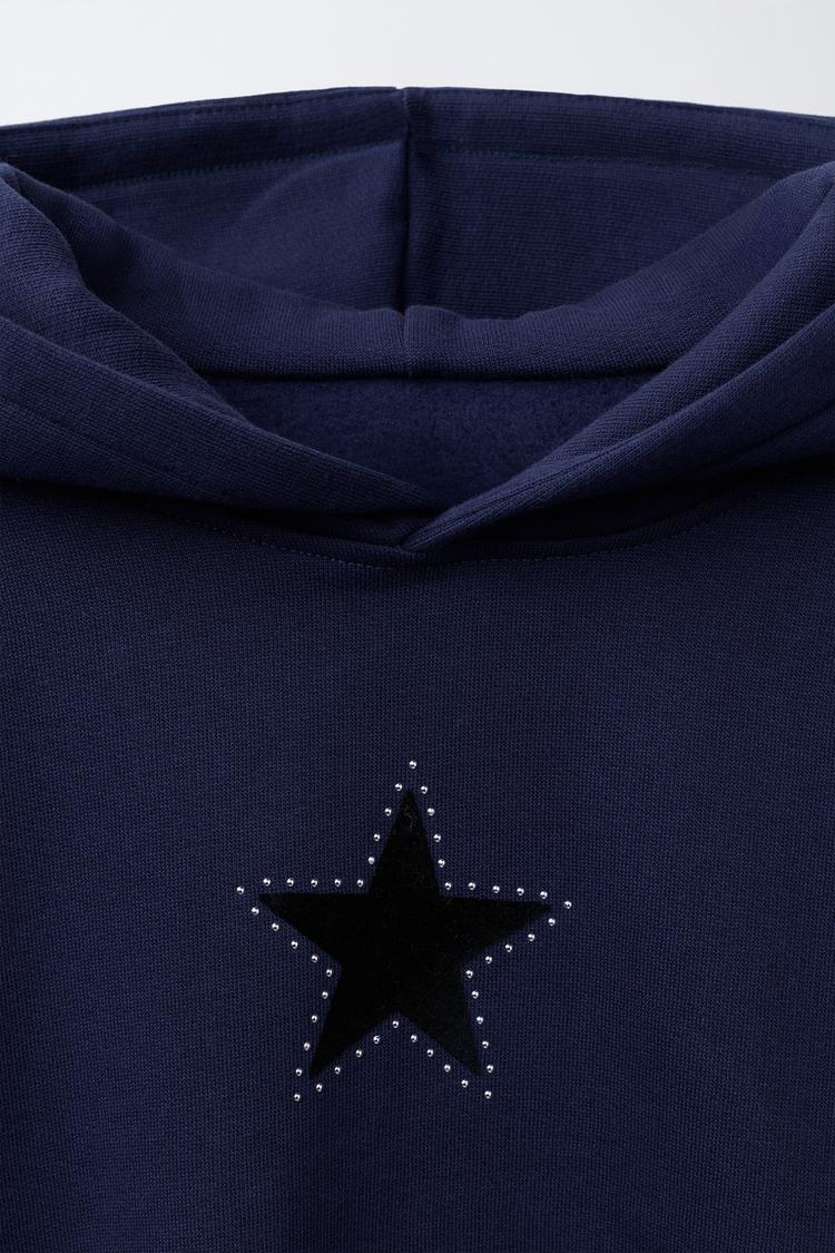 ZARA ХУДИ С КАПЮШОНОМ, ЗВЕЗДОЙ И ЗАКЛЕПКАМИ, СИНИЙ