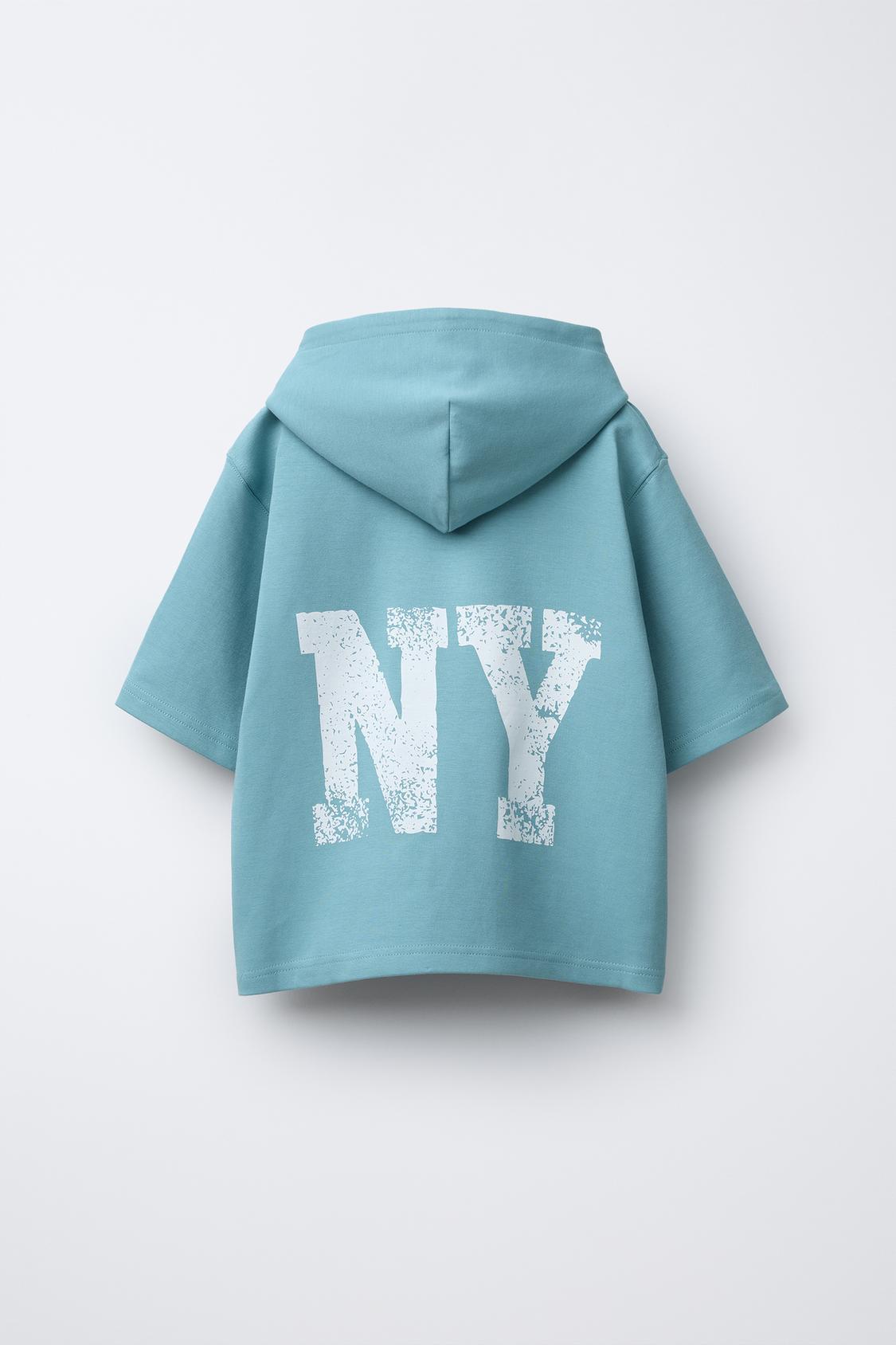 ZARA ХУДИ С КОРОТКИМИ РУКАВАМИ, КАПЮШОНОМ И НАДПИСЬЮ, СИНИЙ