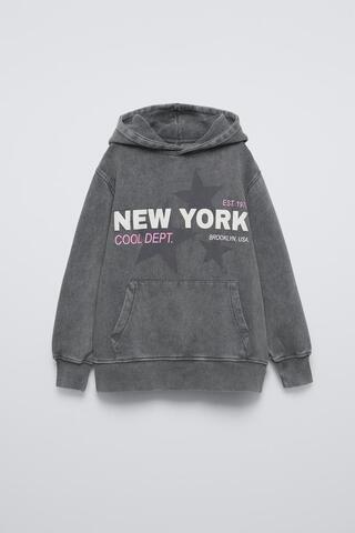ZARA ХУДИ С НАДПИСЬЮ, АНТРАЦИТОВО-СЕРЫ