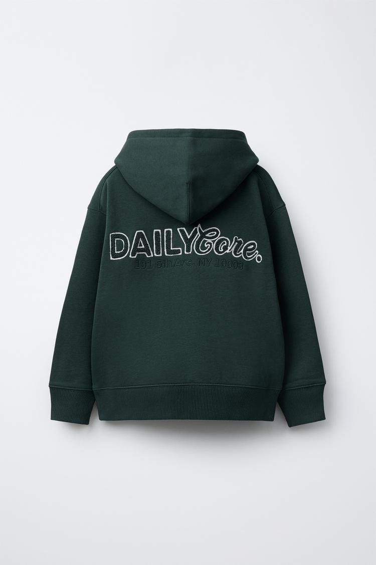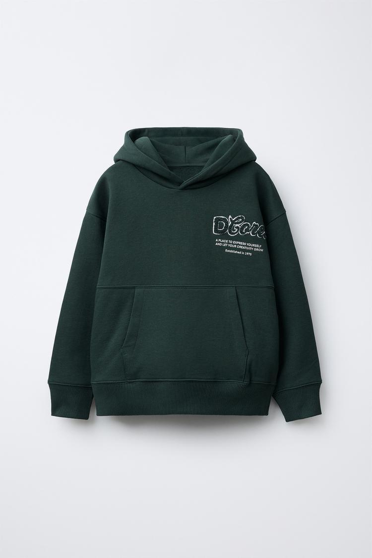 ZARA ХУДИ С НАДПИСЬЮ ИЗ МАХРОВОЙ ТКАНИ, БУТЫЛОЧНО-ЗЕЛЕНЫЙ