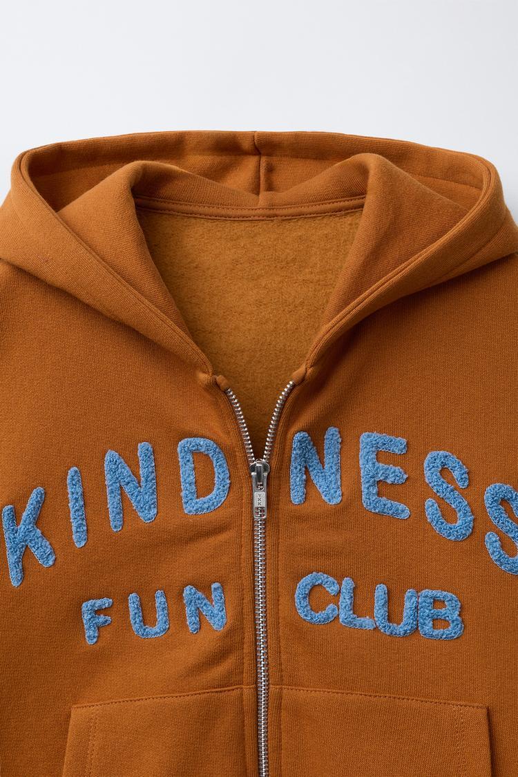ZARA ХУДИ С НАДПИСЬЮ ИЗ МАХРОВОЙ ТКАНИ, ТЕРРАКОТОВЫЙ
