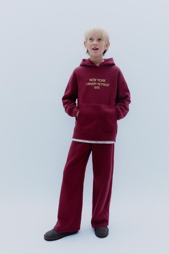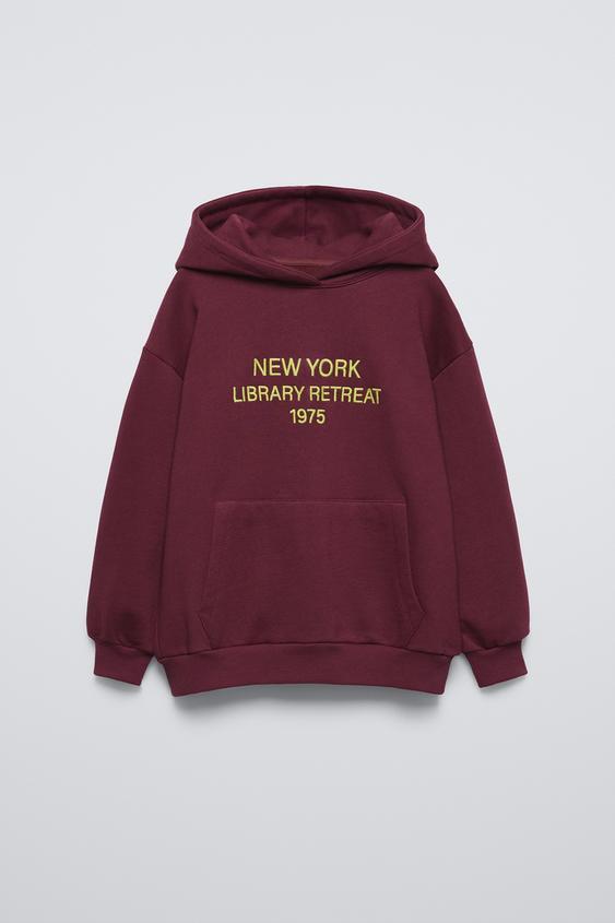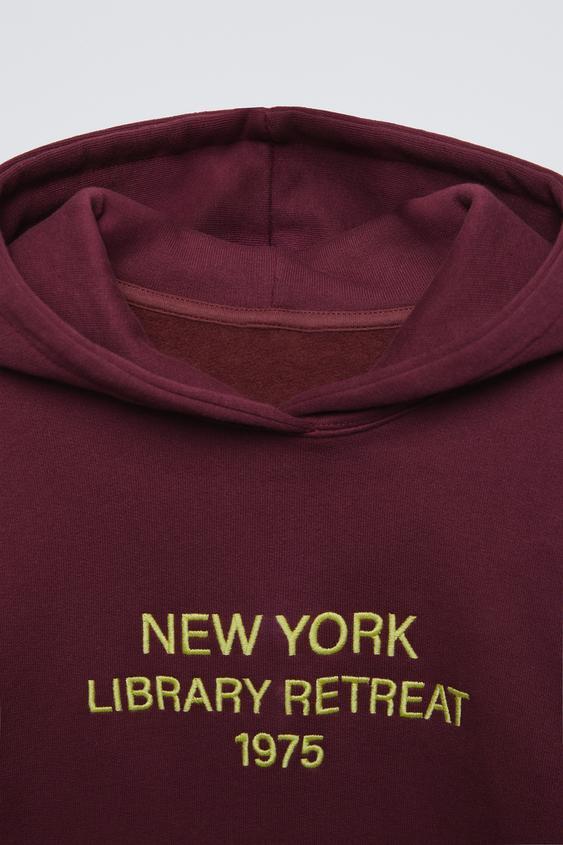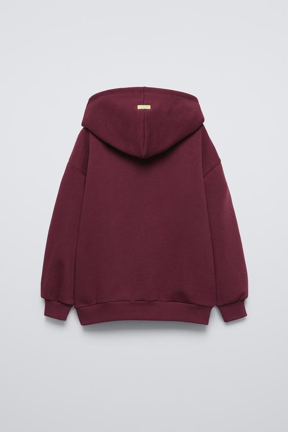 ZARA ХУДИ С ПОДКЛАДКОЙ И НАДПИСЬЮ, ГРАНАТОВЫЙ
