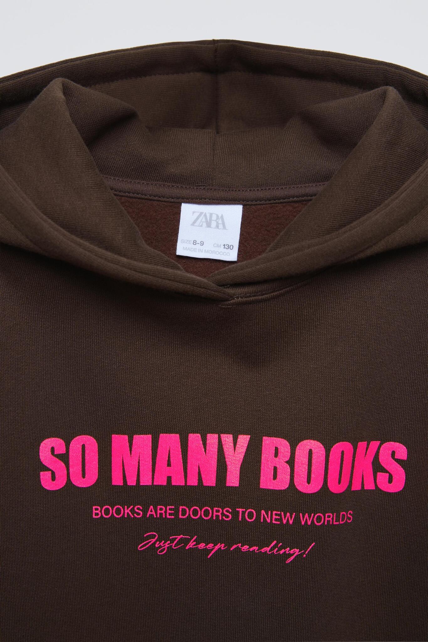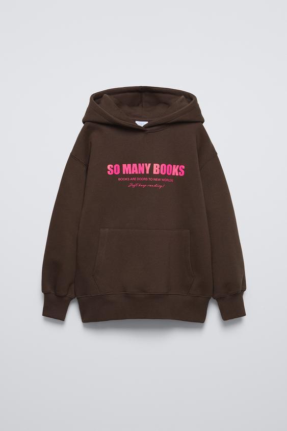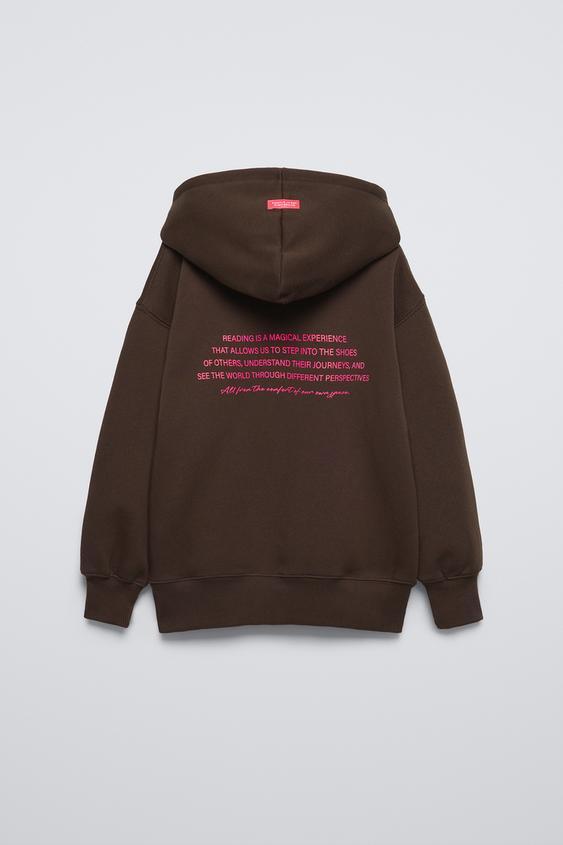 ZARA ХУДИ С ПОДКЛАДКОЙ И НАДПИСЬЮ, КОРИЧНЕВЫЙ
