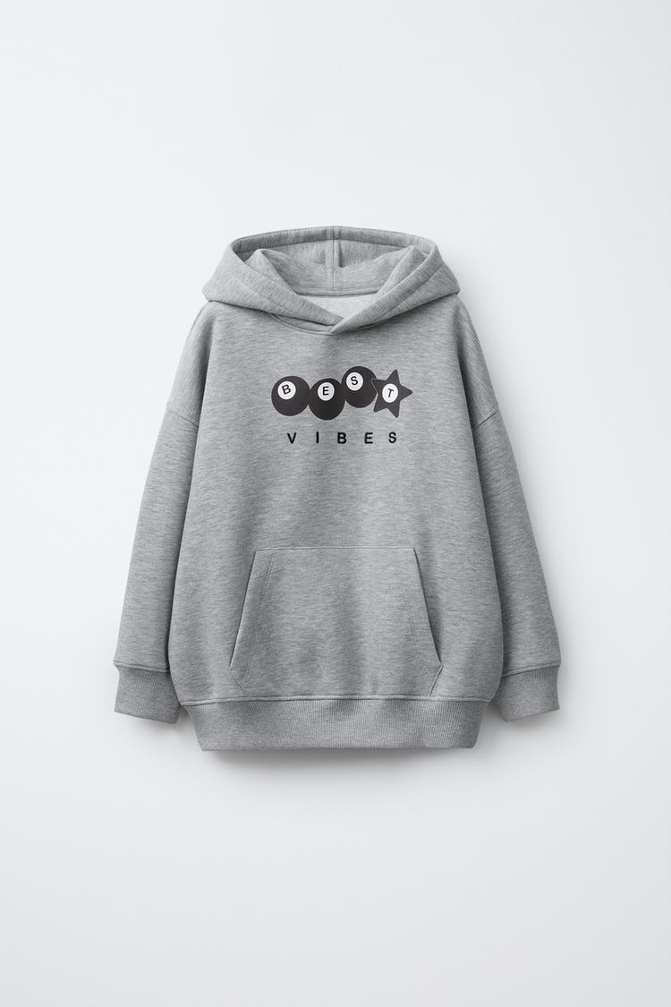 ZARA ХУДИ С ПРИНТОМ «БИЛЬЯРДНЫЙ ШАР», СЕРЫЙ МЕЛАНЖ
