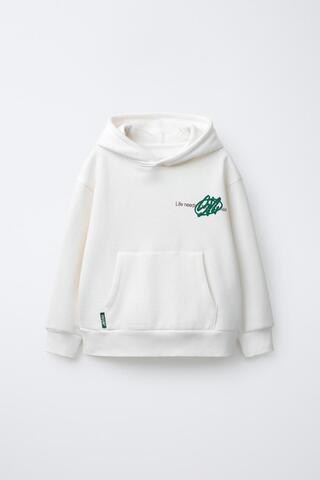 ZARA ХУДИ С ПРИНТОМ «ГРАФФИТИ», ЖЕЛТОВАТО-БЕЛЫЙ