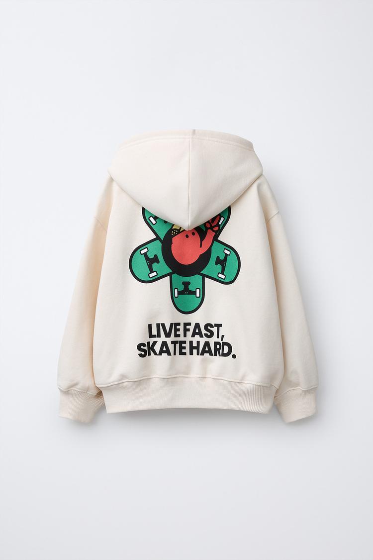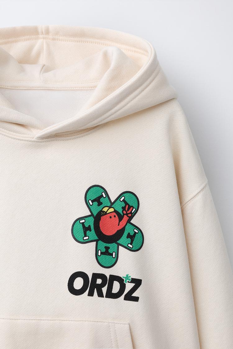 ZARA ХУДИ С ПРИНТОМ И ЛОГОТИПОМ, ЖЕЛТОВАТО-БЕЛЫЙ