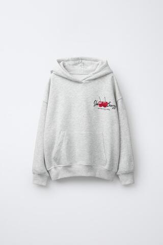 ZARA ХУДИ С ВИШНЯМИ, СЕРЫЙ МЕЛАНЖ