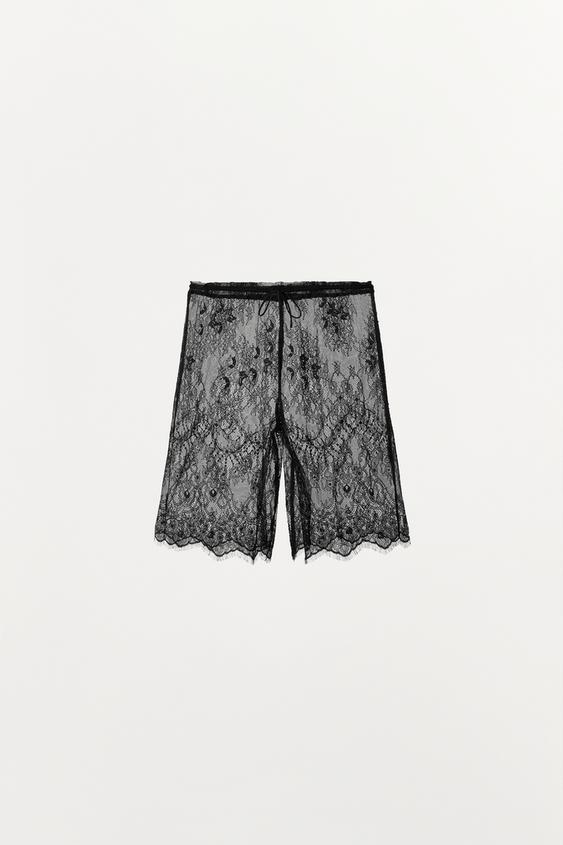 ZARA КАПРИ С КРУЖЕВОМ, ЧЕРНЫЙ