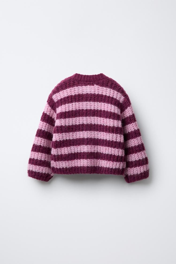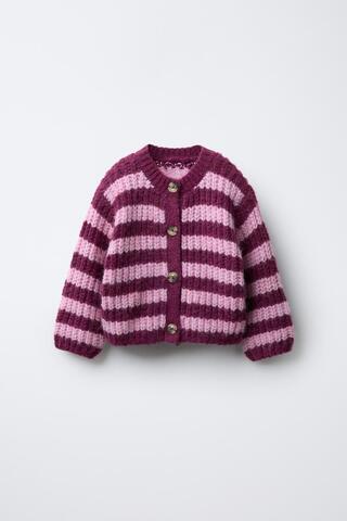 ZARA КАРДИГАН ГРУБОЙ ВЯЗКИ В ПОЛОСКУ, РОЗОВЫЙ