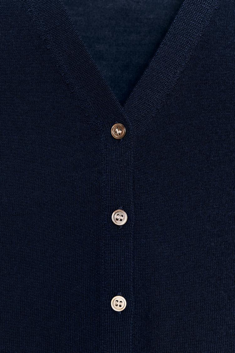 ZARA КАРДИГАН ИЗ 100% ЭКСТРАТОНКОЙ ШЕРСТИ С КОРОТКИМ РУКАВОМ, МОРСКОЙ СИНИЙ