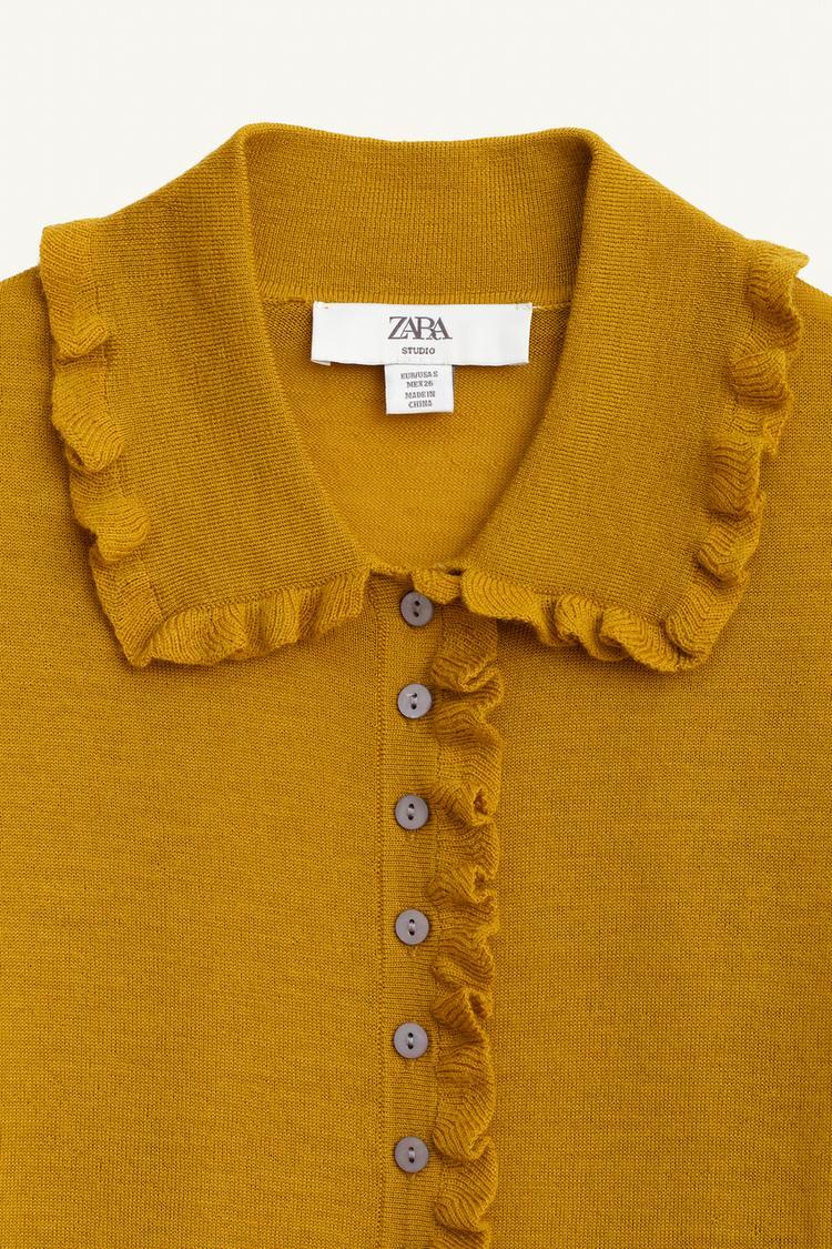 ZARА КАРДИГАН ИЗ 100% ШЕРСТИ, ГОРЧИЧНЫЙ