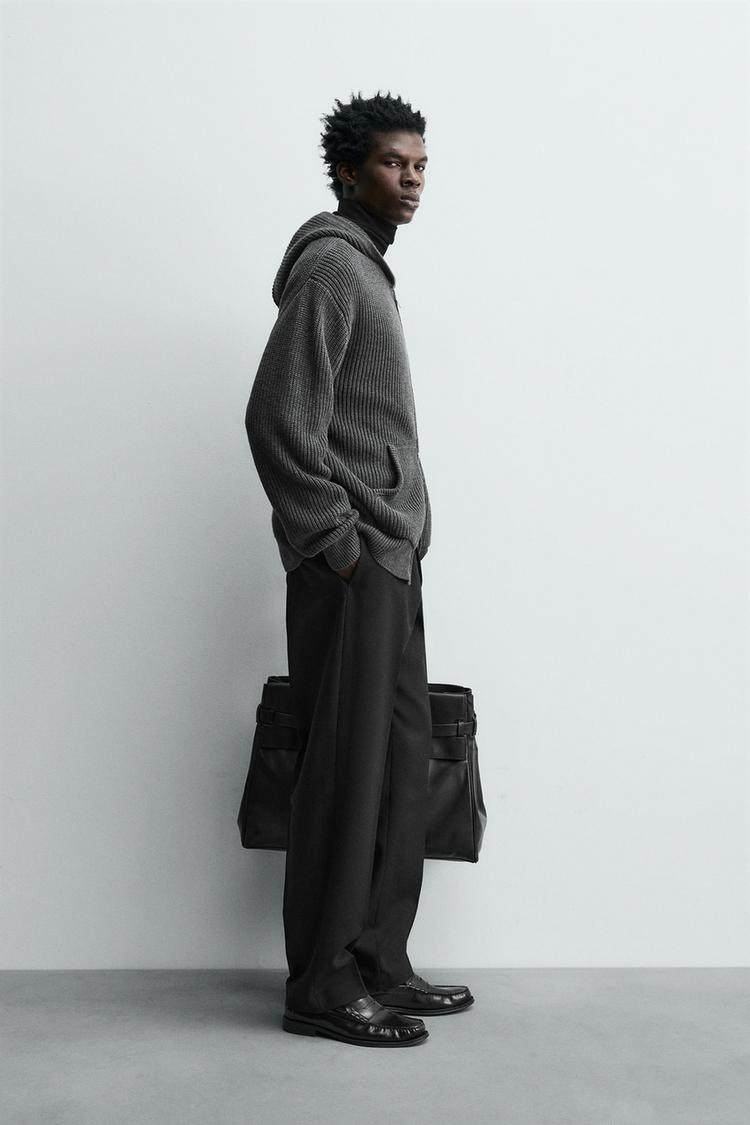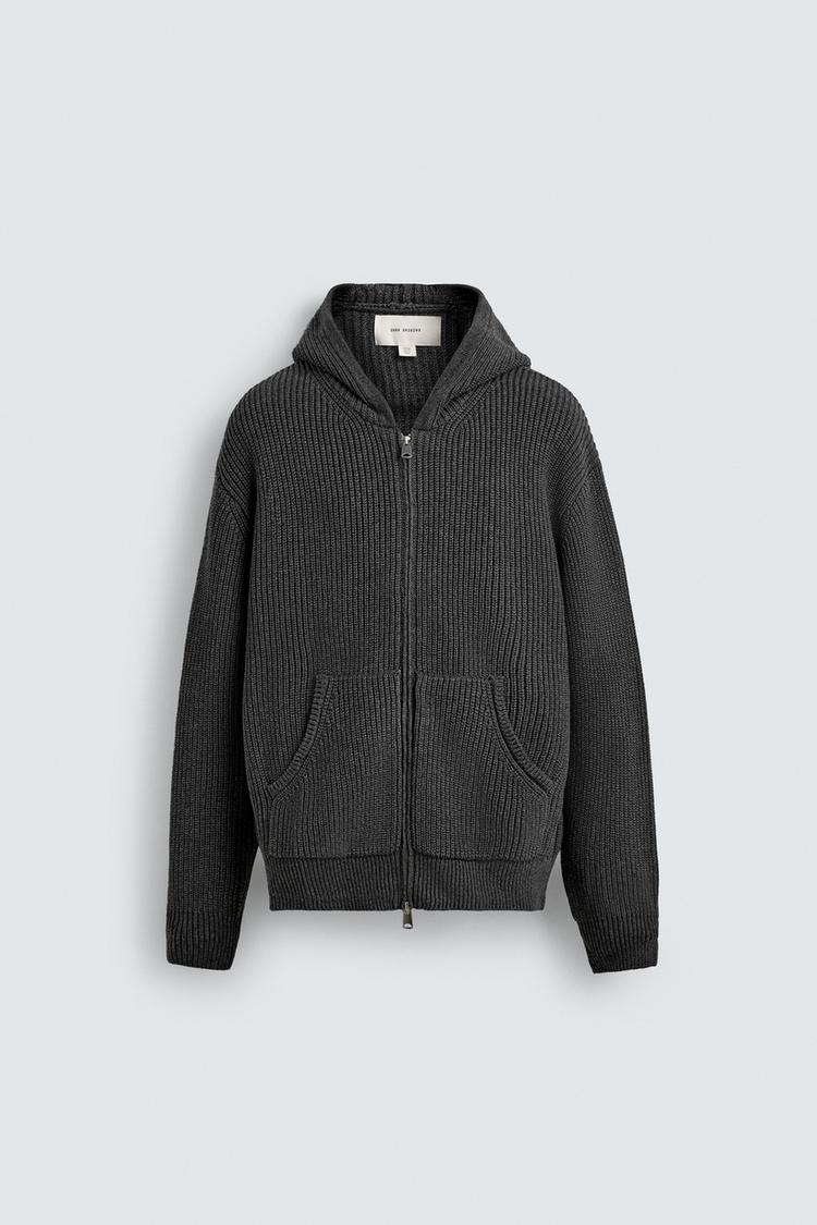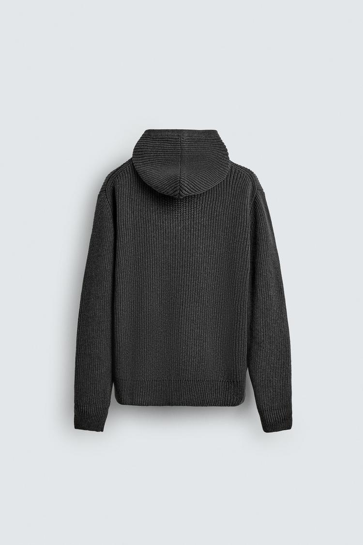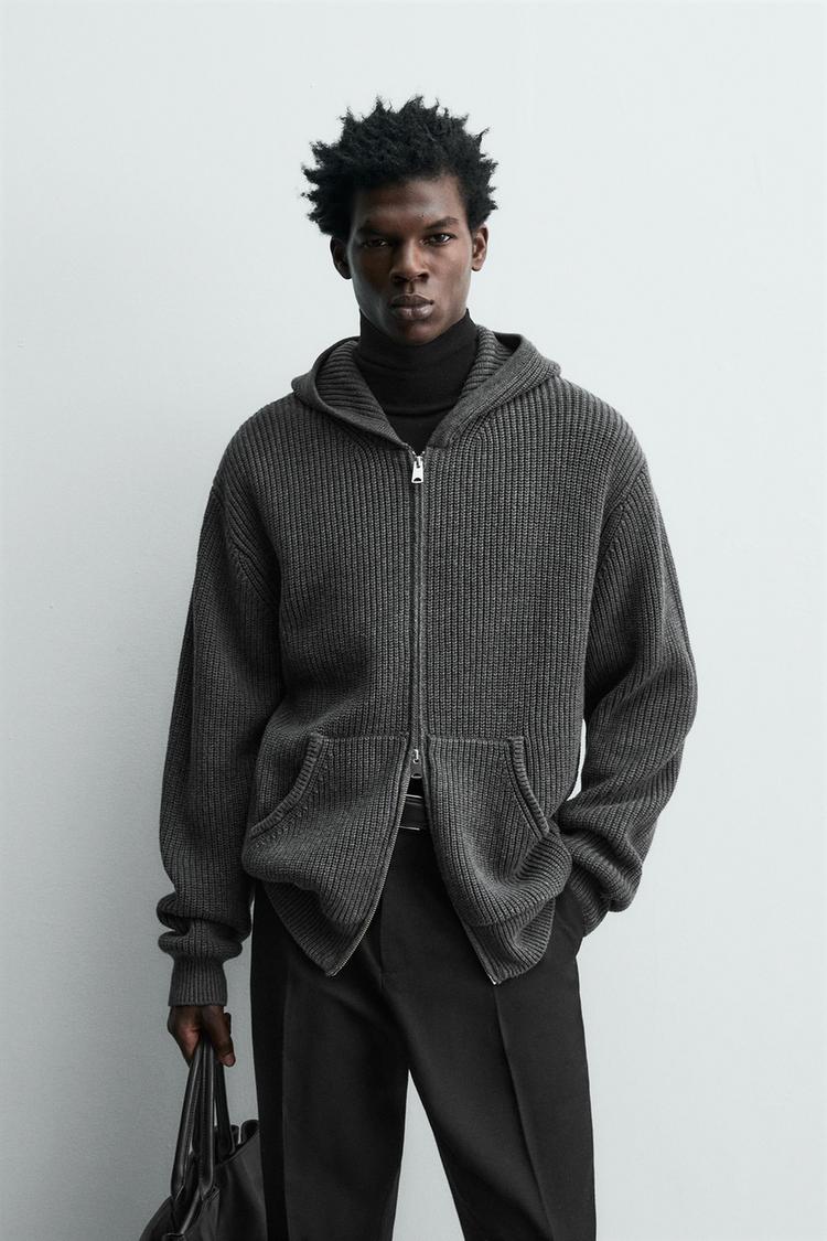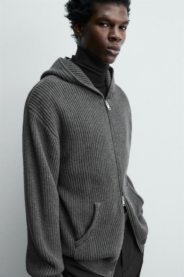 ZARA КАРДИГАН ИЗ ХЛОПКА И ШЕРСТИ С КАПЮШОНОМ, СЕРЫЙ МЕЛАНЖ