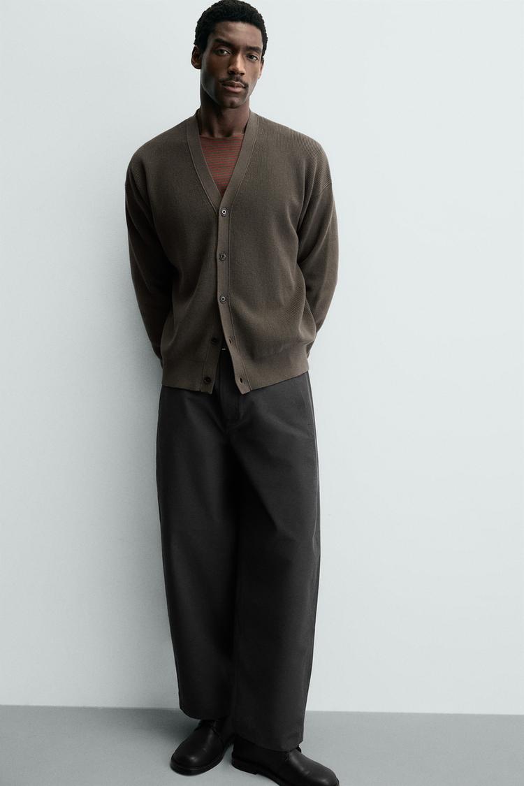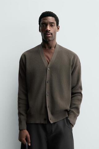 ZARA КАРДИГАН ИЗ РЕЛЬЕФНОГО ХЛОПКА, КОРИЧНЕВЫЙ