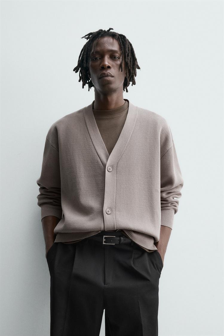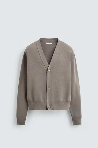 ZARA КАРДИГАН ИЗ РЕЛЬЕФНОГО ХЛОПКА, СЕРО-КОРИЧНЕВЫЙ