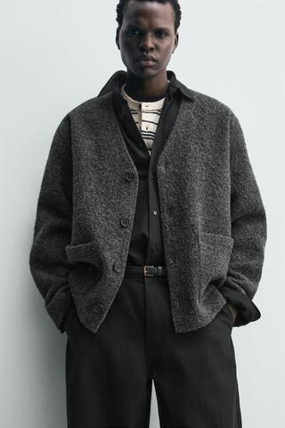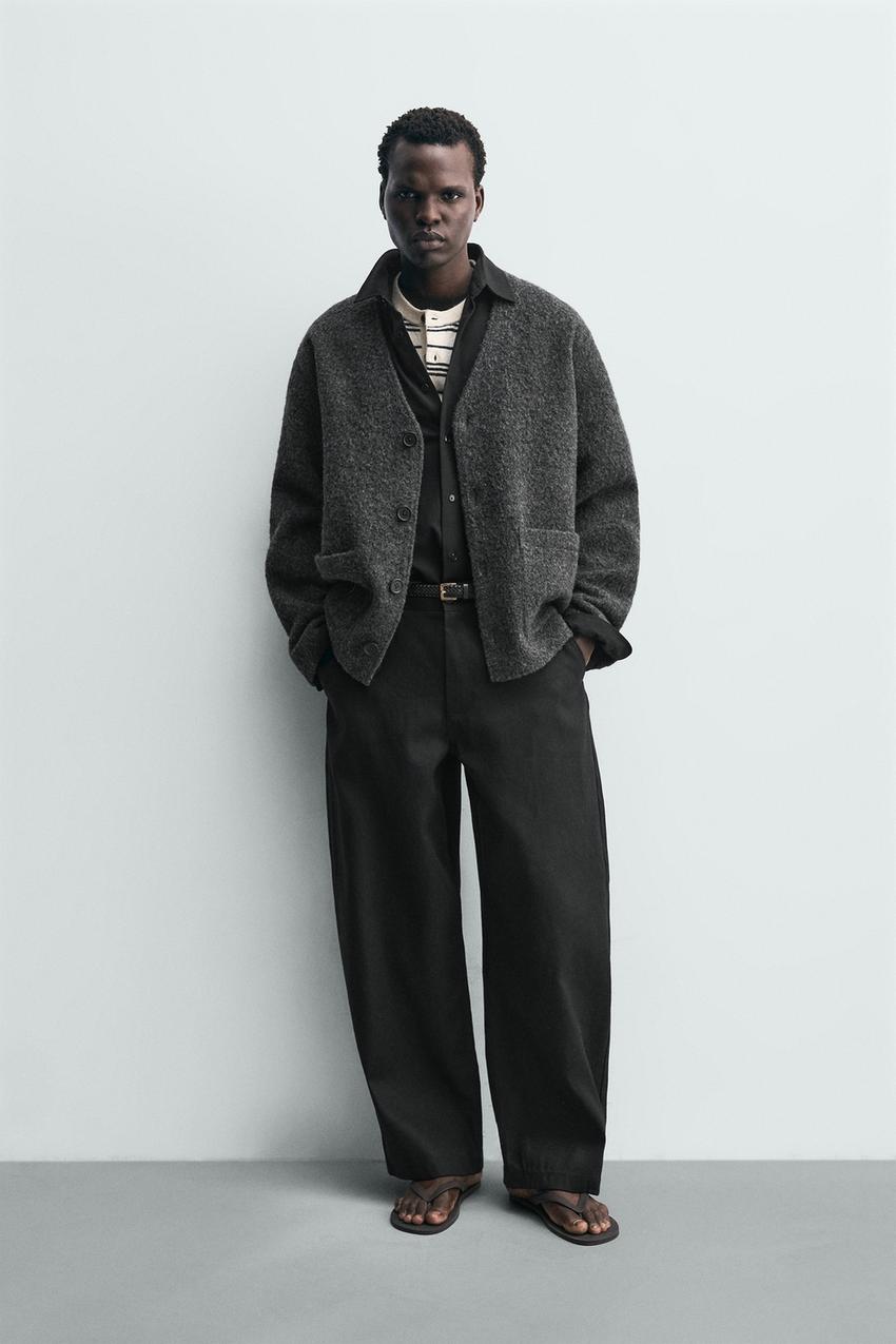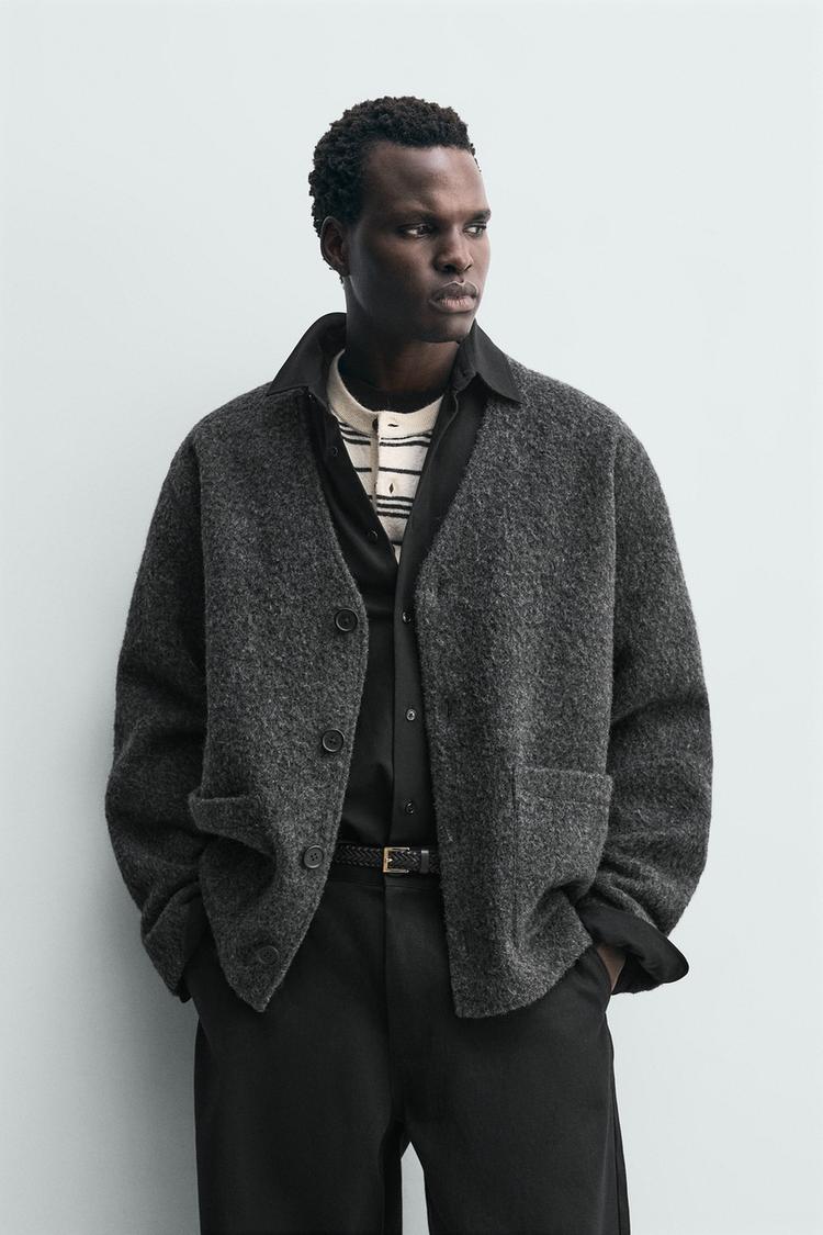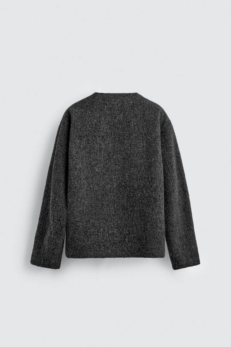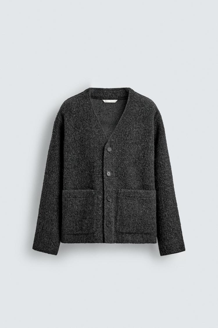 ZARA КАРДИГАН ИЗ РЕЛЬЕФНОЙ ТКАНИ С ШЕРСТЬЮ, АНТРАЦИТОВО-СЕРЫЙ