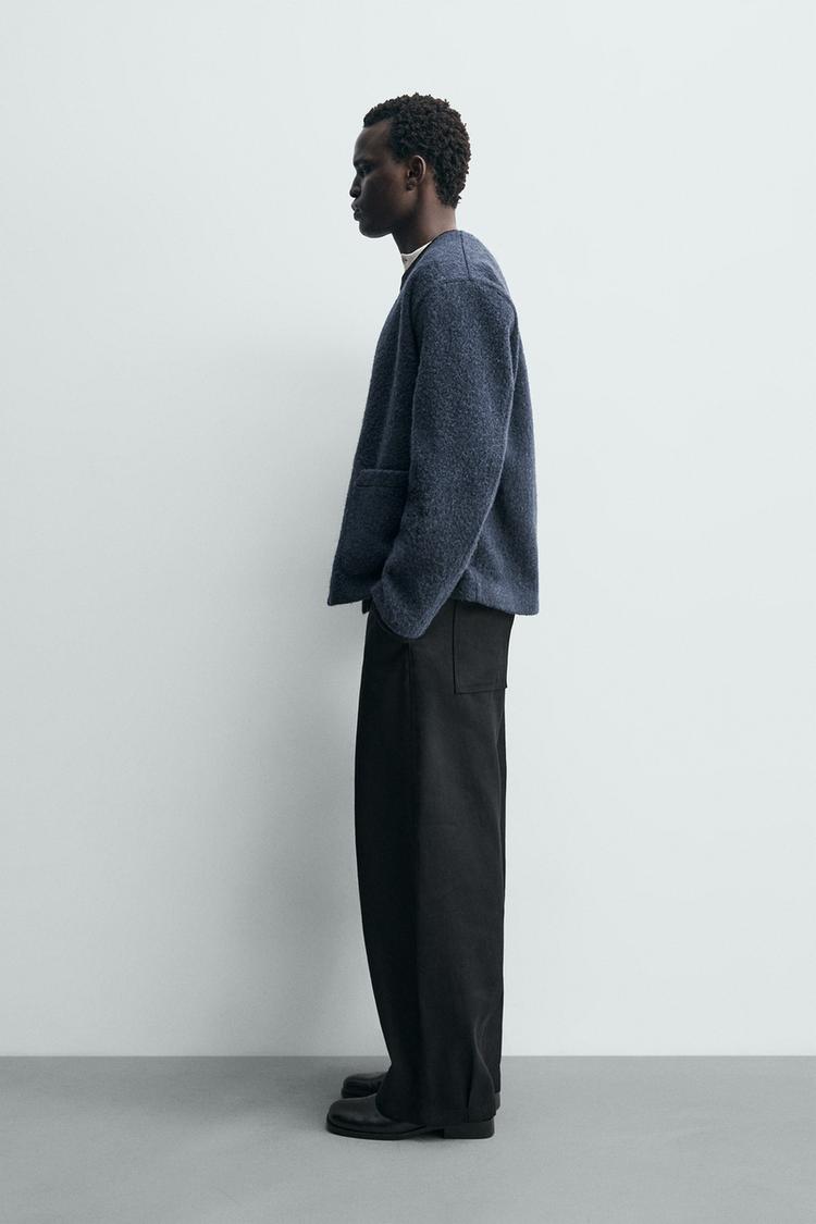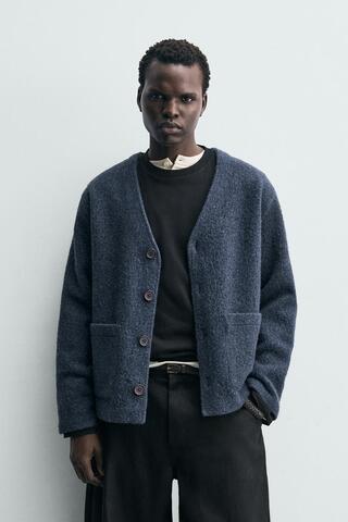 ZARA КАРДИГАН ИЗ РЕЛЬЕФНОЙ ТКАНИ С ШЕРСТЬЮ, ВЫЦВЕТШИЙ СИНИЙ