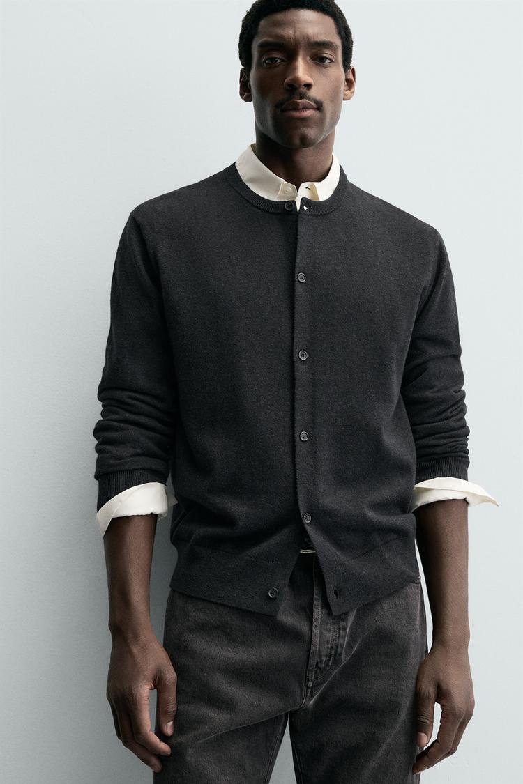 ZARA КАРДИГАН ИЗ СМЕСОВОЙ ШЕРСТИ, АНТРАЦИТОВО-СЕРЫЙ