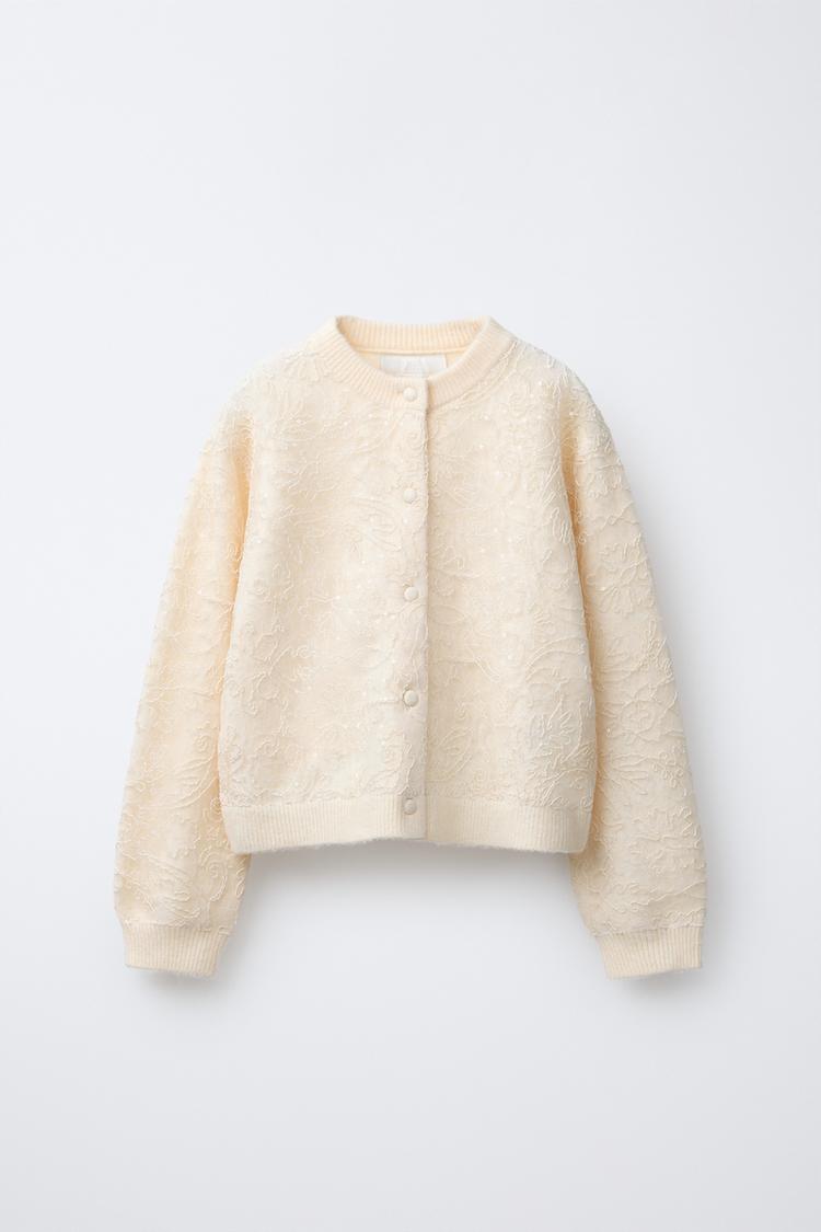 ZARA КАРДИГАН ИЗ ТРИКОТАЖА С ПАЙЕТКАМИ, ВАНИЛЬНЫЙ