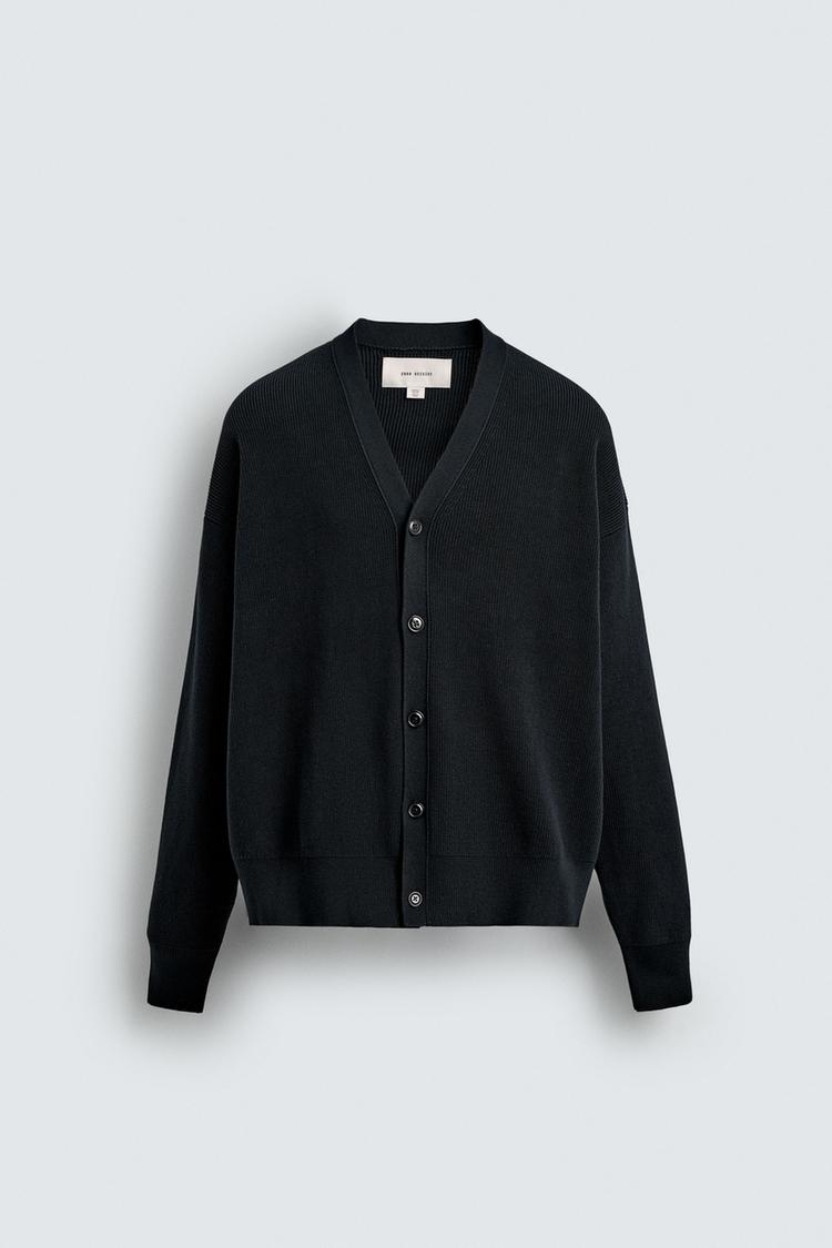 ZARA КАРДИГАН КЛАССИЧЕСКОГО КРОЯ ИЗ ХЛОПКА, МОРСКОЙ ТЕМНО-СИНИЙ