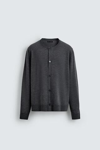 ZARA КАРДИГАН КЛАССИЧЕСКОГО КРОЯ С ШЕРСТЬЮ, АНТРАЦИТОВО-СЕРЫЙ