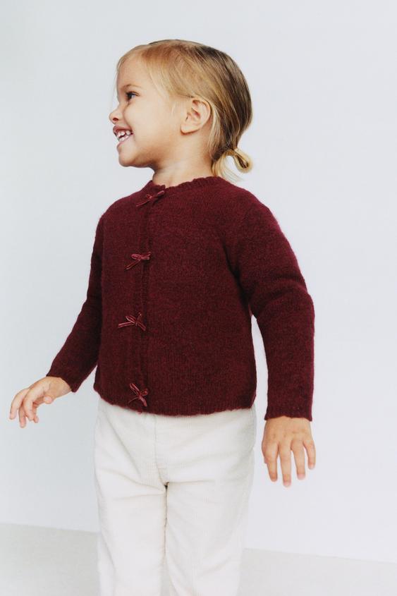 ZARA КАРДИГАН С БАРХАТНЫМИ БАНТАМИ, БУРГУНДИ