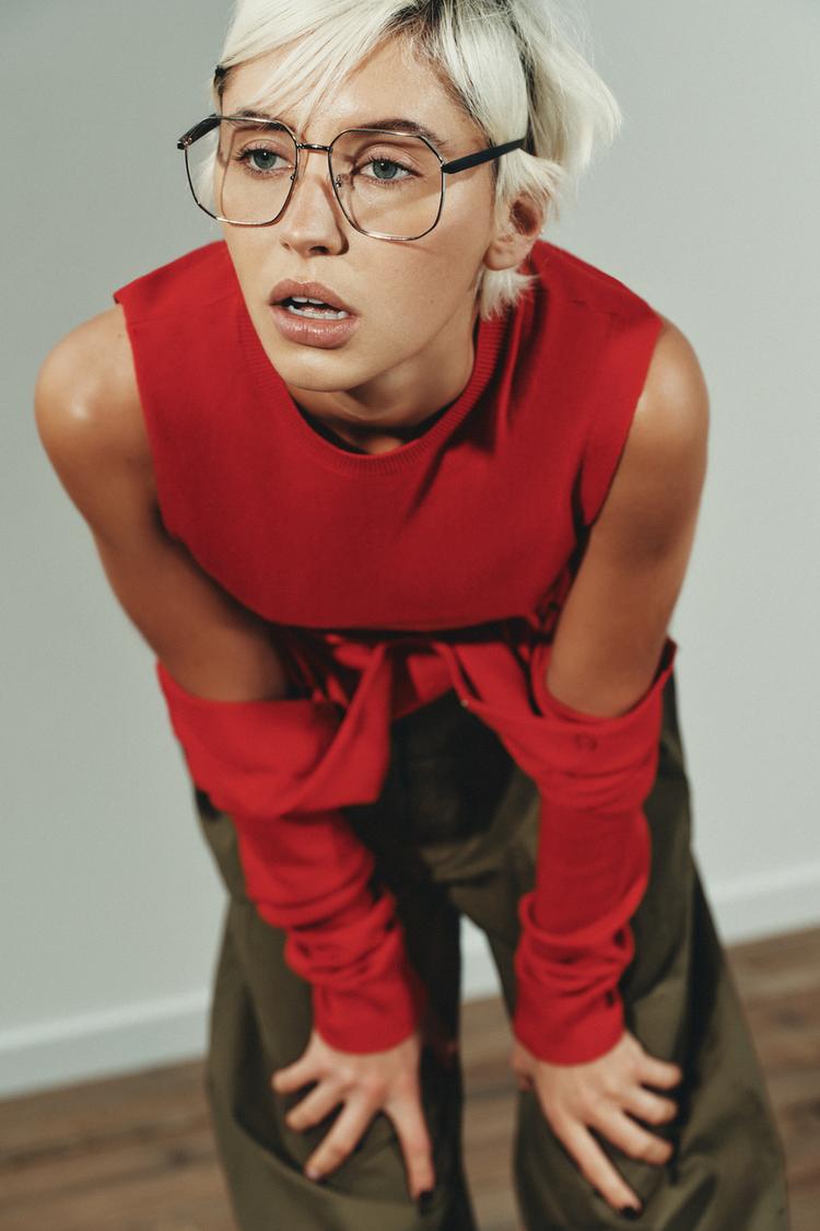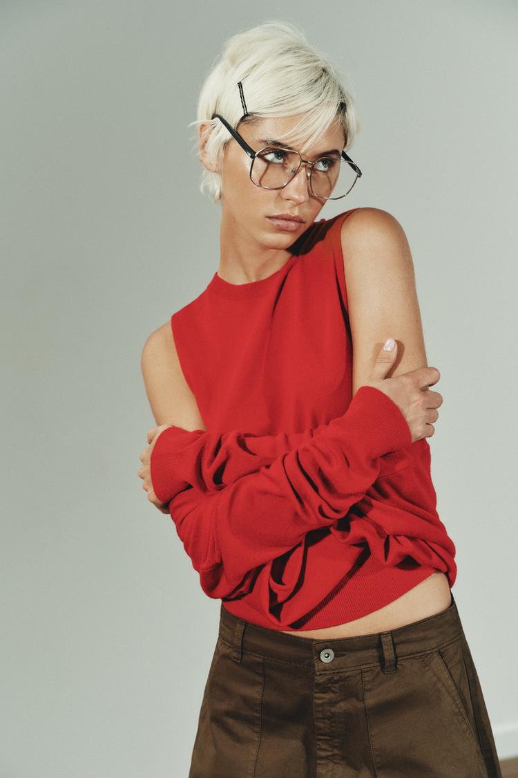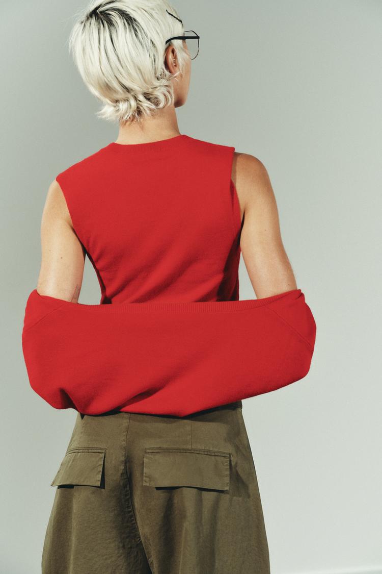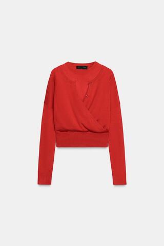 ZARA КАРДИГАН С ДВОЙНЫМ СЛОЕМ, КРАСНЫЙ