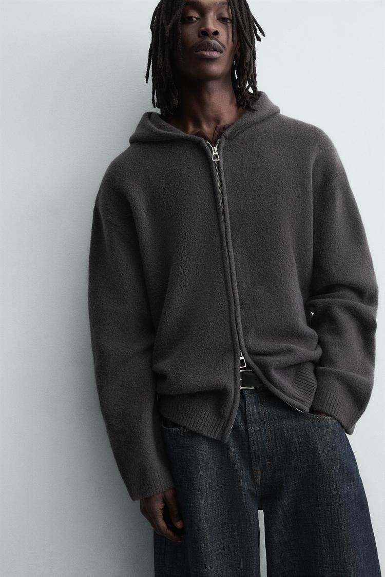 ZARA КАРДИГАН С КАПЮШОНОМ, АНТРАЦИТОВО-СЕРЫЙ