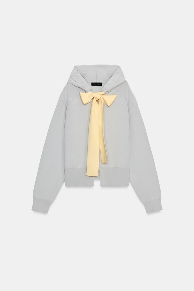 ZARA КАРДИГАН С КАПЮШОНОМ И ЗАВЯЗКАМИ, СЕРЫЙ МЕЛАНЖ