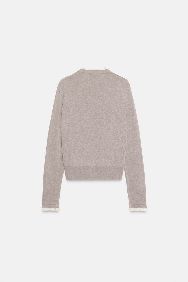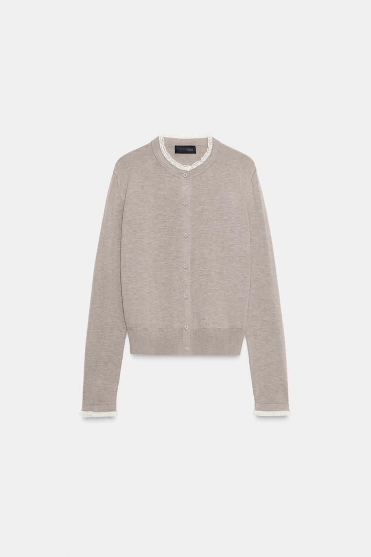 ZARА КАРДИГАН С КОМБИНИРОВАННОЙ КРУЖЕВНОЙ ОТДЕЛКОЙ, СЕРО-КОРИЧНЕВЫЙ