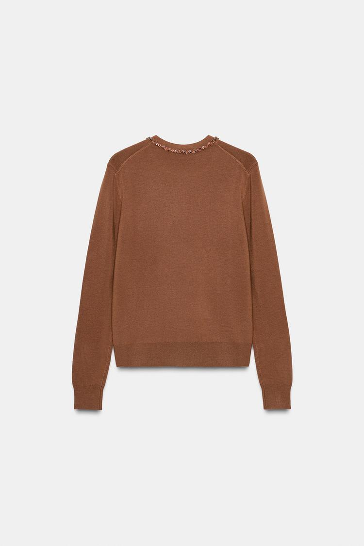 ZARА КАРДИГАН С КОНТРАСТНЫМИ ДЕТАЛЯМИ, КОРИЧНЕВЫЙ