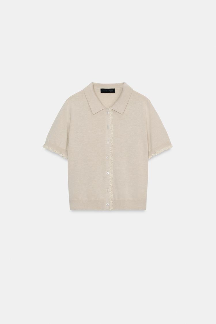 ZARA КАРДИГАН С КОРОТКИМИ РУКАВАМИ И КРУЖЕВОМ, СЕРО-ДЫМЧАТЫЙ