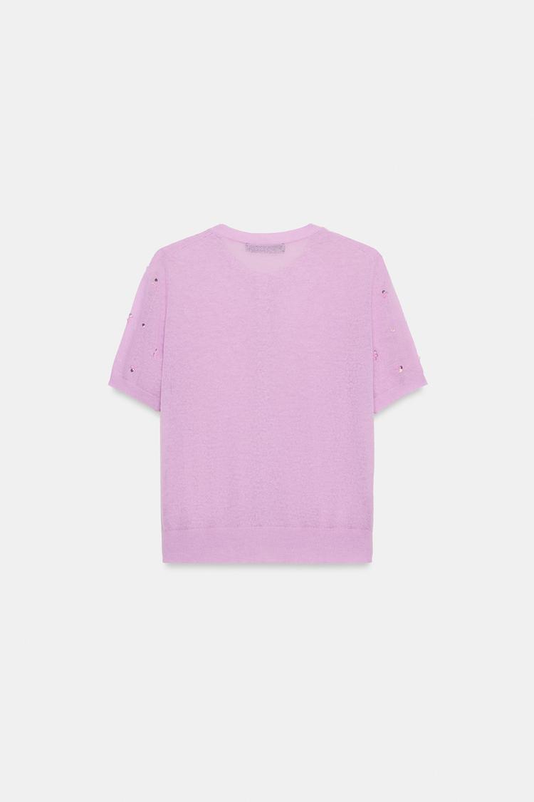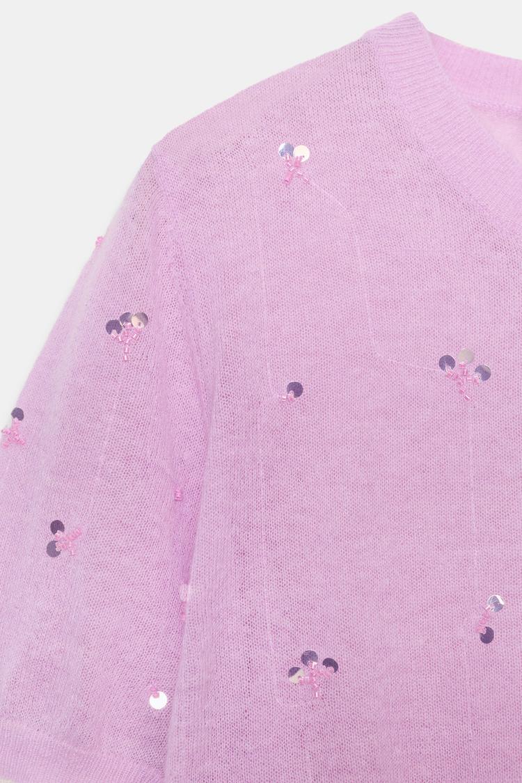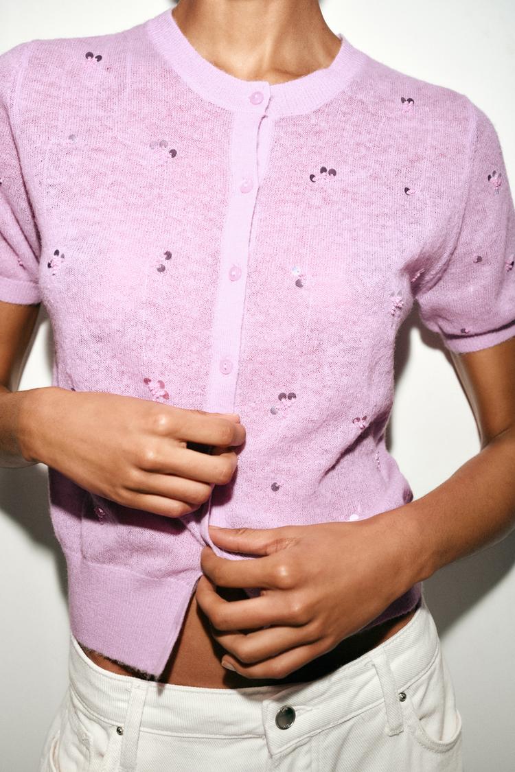 ZARA КАРДИГАН С КОРОТКИМИ РУКАВАМИ И ПАЙЕТКАМИ, РОЗОВЫЙ/ЛИЛОВЫЙ