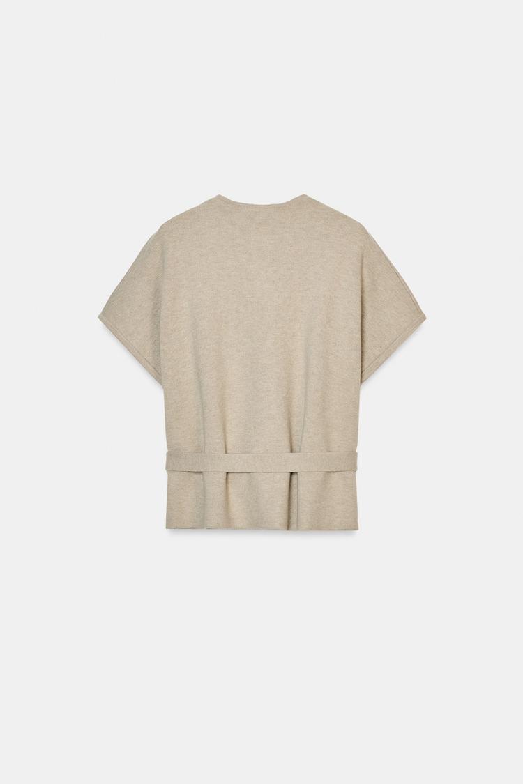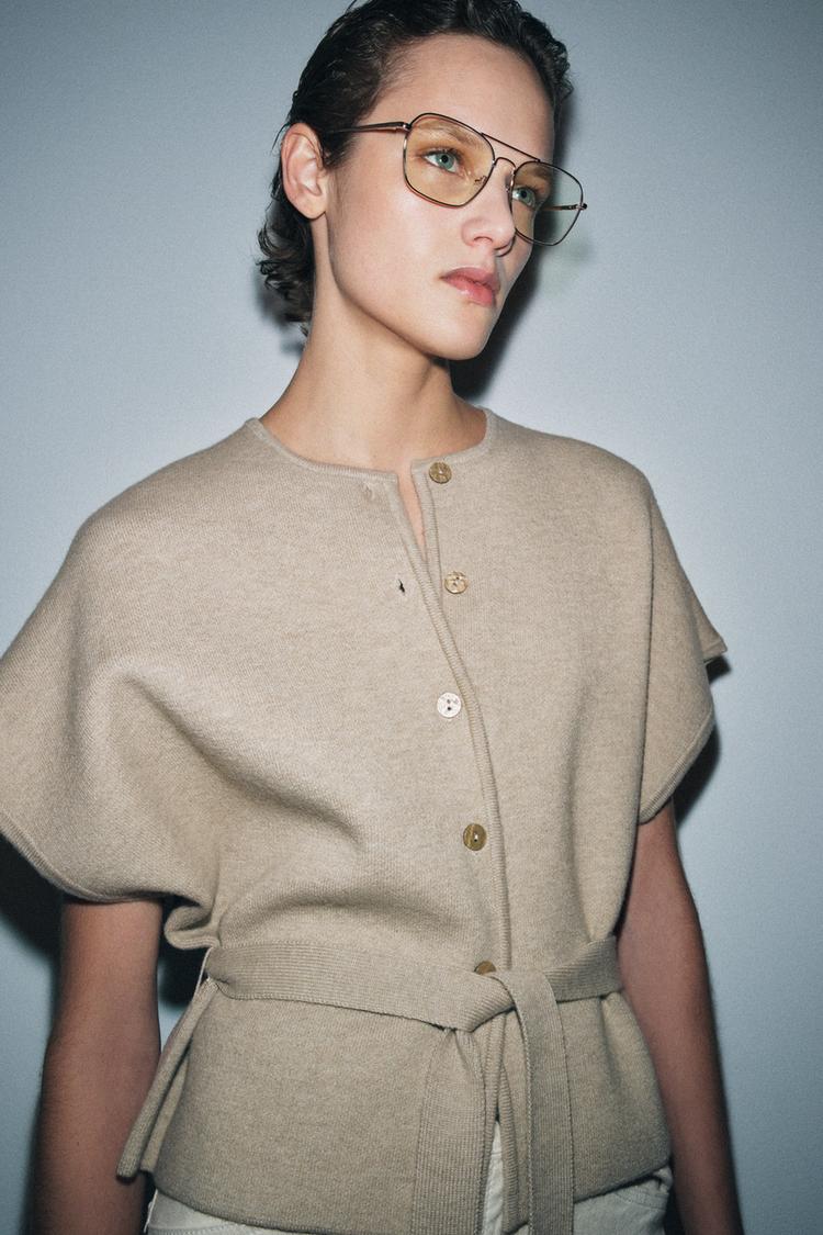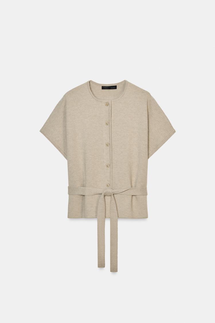 ZARA КАРДИГАН С КОРОТКИМИ РУКАВАМИ И ПОЯСОМ, СЕРО-КОРИЧНЕВЫЙ