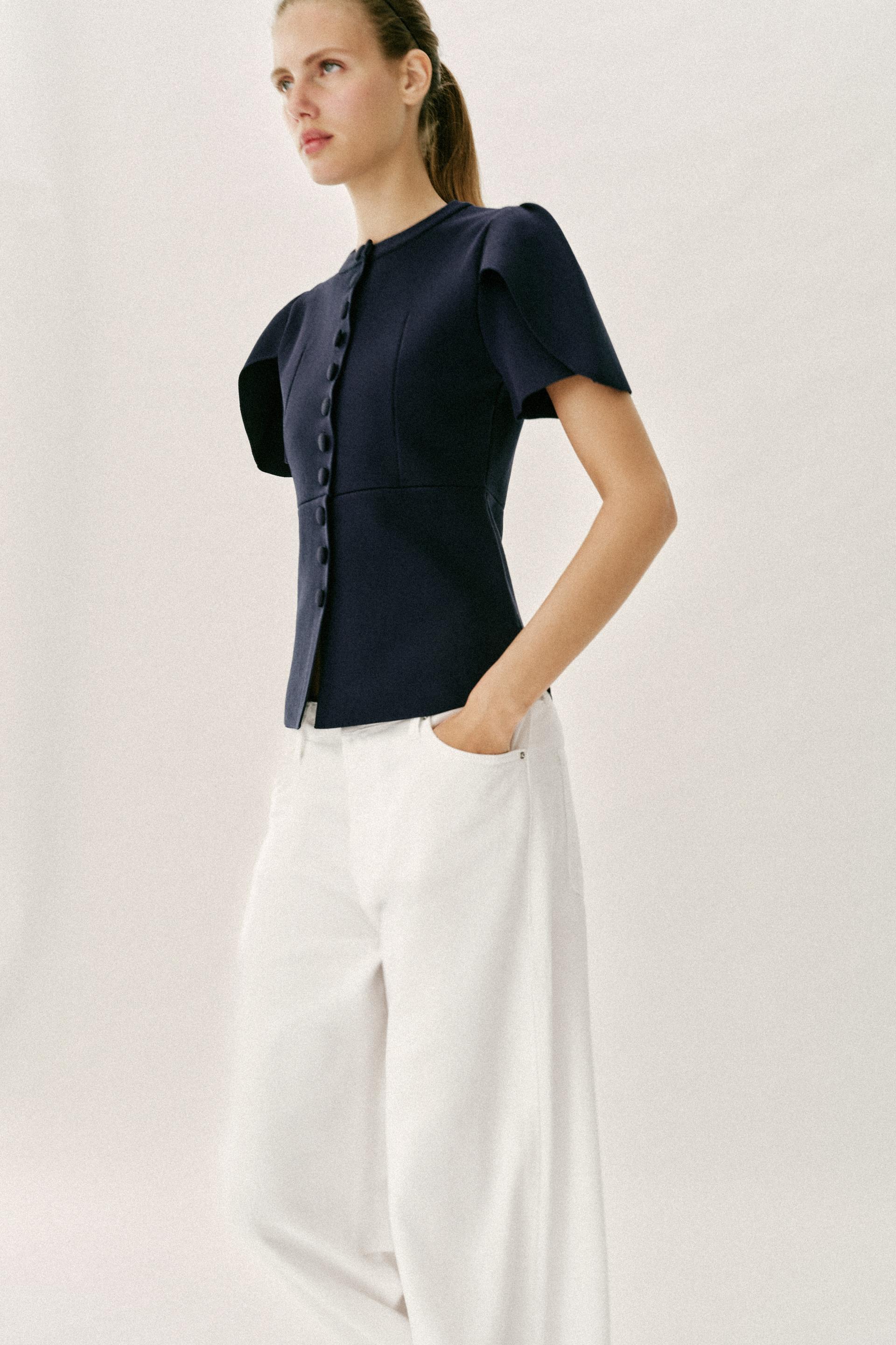 ZARA КАРДИГАН С ОБЪЕМНЫМИ РУКАВАМИ И РАЗРЕЗАМИ, МОРСКОЙ СИНИЙ