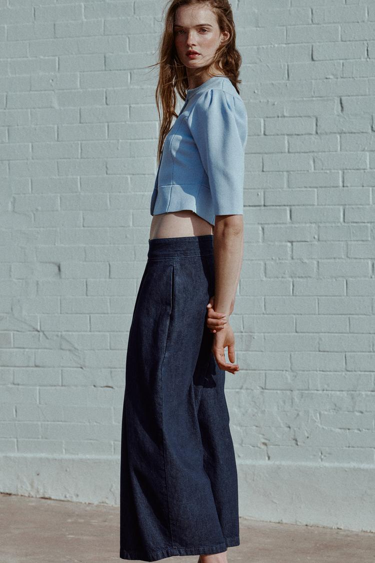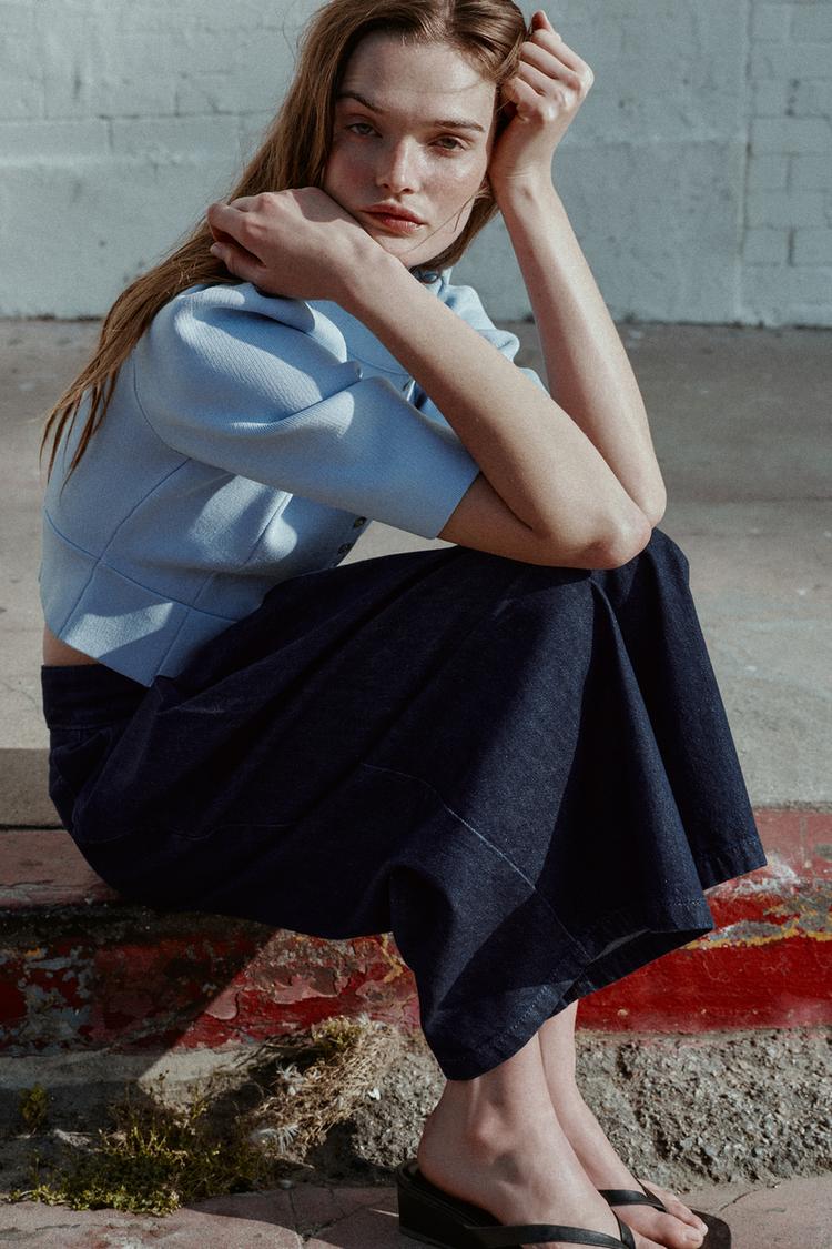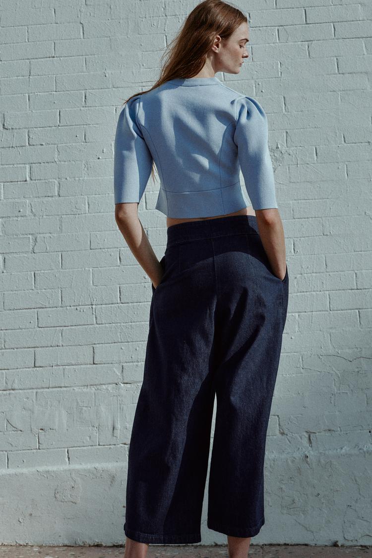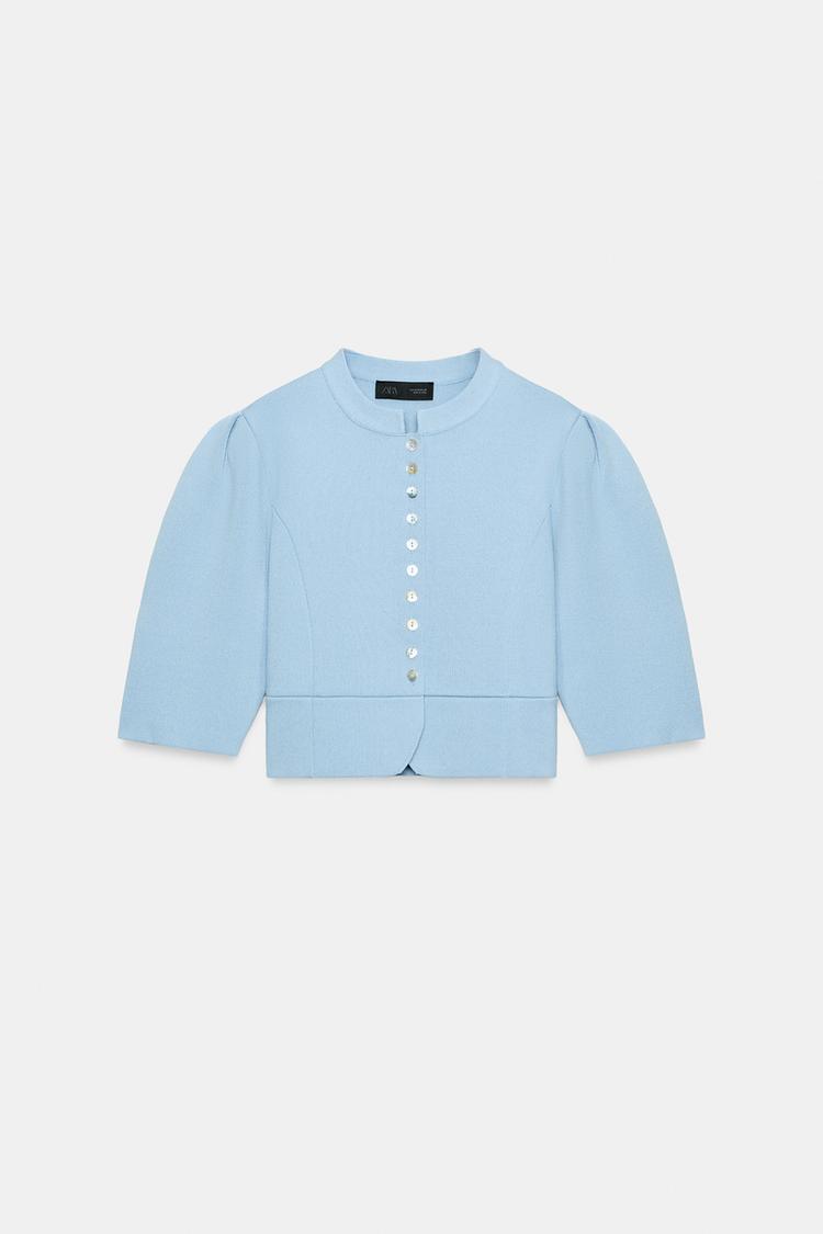ZARA КАРДИГАН С ОБЪЕМНЫМИ РУКАВАМИ, ПАСТЕЛЬНО-СИНИЙ